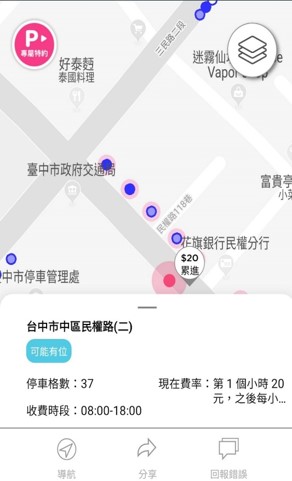 此外,交通局去年與遠傳電信合作推出「Parking GO」Line官方帳號,提供快速查找全市路邊車位;「停車大聲公」APP即日起與「Parking GO」合作,整合全市舖設地磁路段,在停車大聲公APP內即時顯示路邊停車空位資訊。