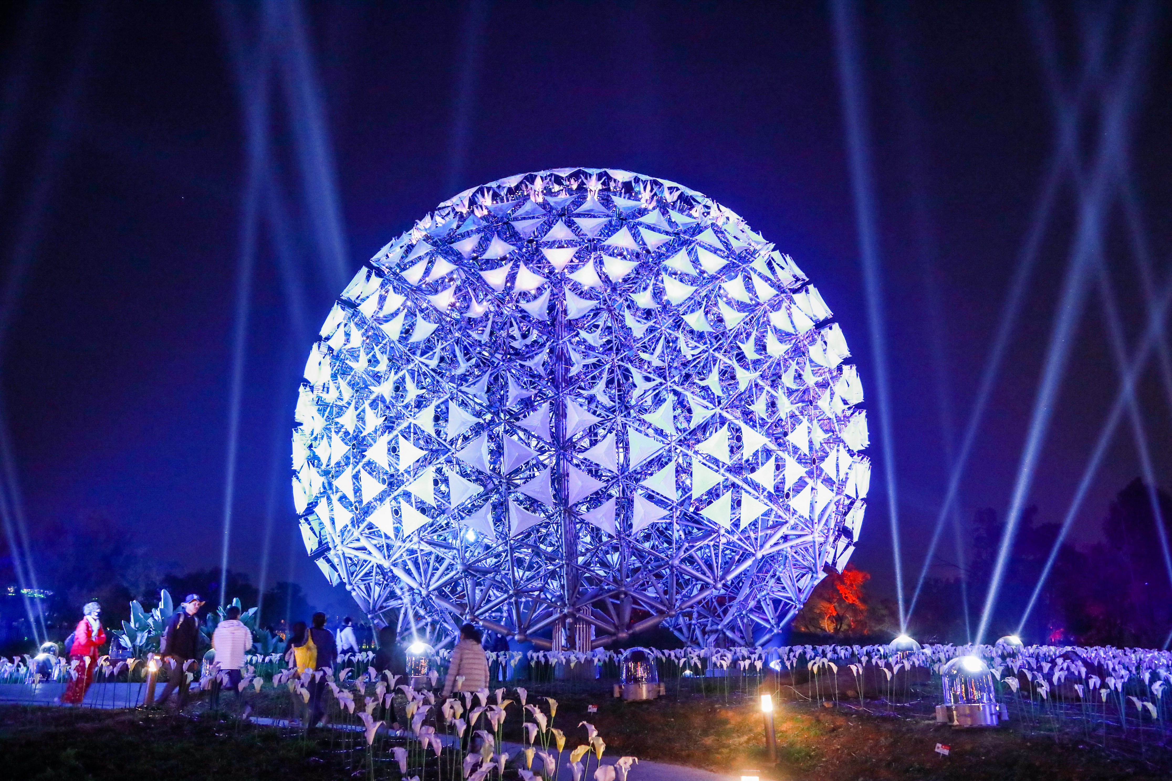 2020台灣燈會點亮台中,受人矚目的巨型火紅花朵《聆聽花開的聲音》由原設計團隊豪華朗機工改造,以嶄新樣貌《永晝心》繼續點亮后里森林園區,白色光感閃閃流動,仿若群鳥飛過,又似繁星點點,用交響與電子交錯的壯麗配樂,將光點與機械結合,讓觀眾好像感受一場生命流動的感官饗宴。