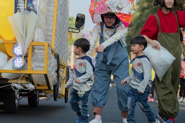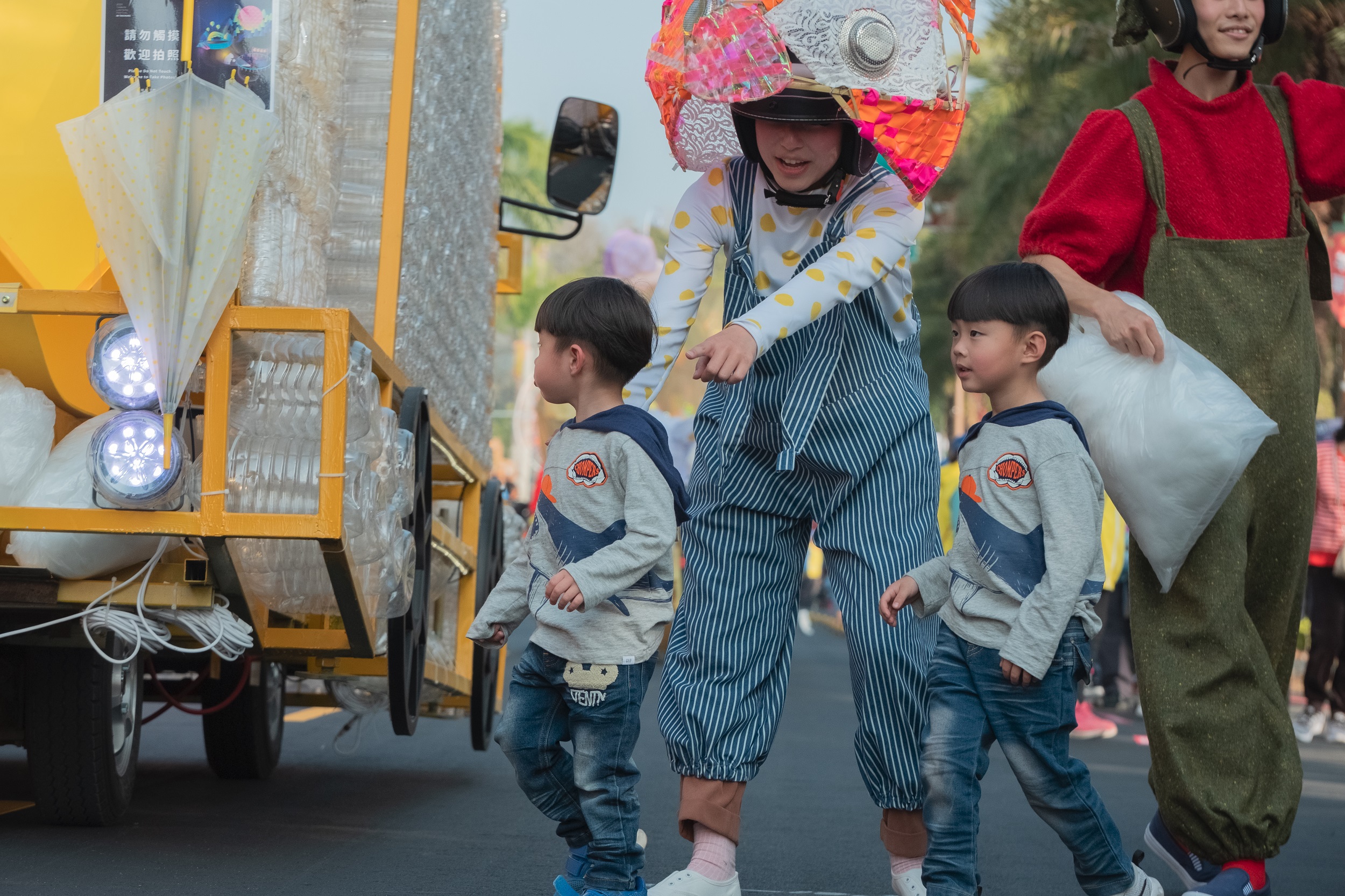 「海洋爵士樂器車」車體則圍繞海洋生物,搭配自動化樂器演奏,以及專業樂手吹奏薩克斯風,呈現台灣身為海島王國及台中爵士音樂節意象;用回收寶特瓶構成的「環保垃圾車」,置入台灣「追垃圾車」文化,由豬小弟領軍,邀請大家一起揮別豬年、迎接鼠年。
