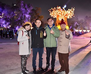 「產業讚聲燈區」集結在地29家企業能量,有具工業4.0聲音互動功能的台中精機寶寶,還有可讓遊客充電的太陽能板互動體驗貨櫃屋,以及豐興鋼鐵6米機器人、上銀科技小火車旋轉燈組和機器人手臂、兼具金鼠設計和市花山櫻花的美光剪紙門箋等燈組,展現台中產業縮影,都讓遊客目不轉睛。