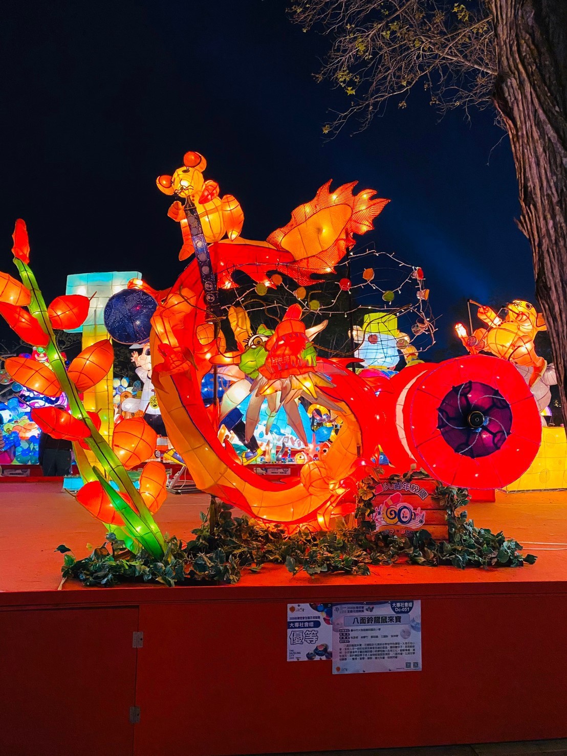 2020台灣燈會主展區在后里開展,位於森林園區的花燈競賽燈區展示全國各級學校親、師、生、志工及各機關團體精心製作的花燈作品,其中,台中市大雅區陽明國小以龍的造型結合鼠年,完成「八面玲瓏『鼠』來寶」花燈作品,期待學校發展八面玲瓏,此作品也獲得今年全國花燈競賽大專社會組「優等」佳績。