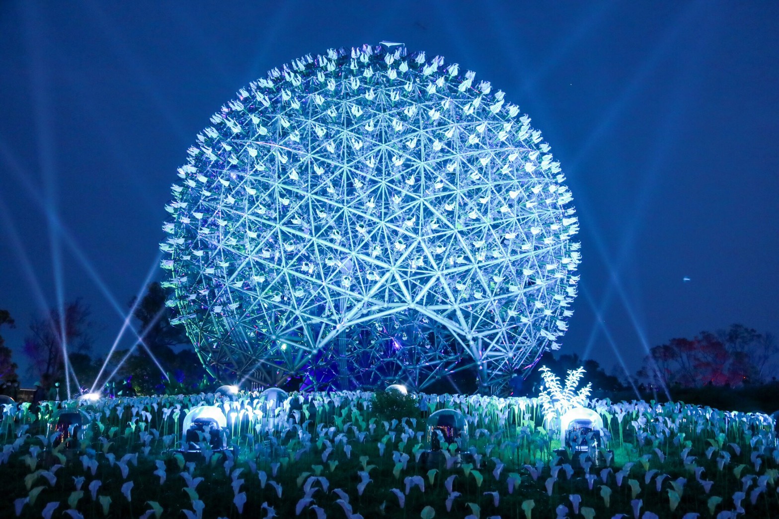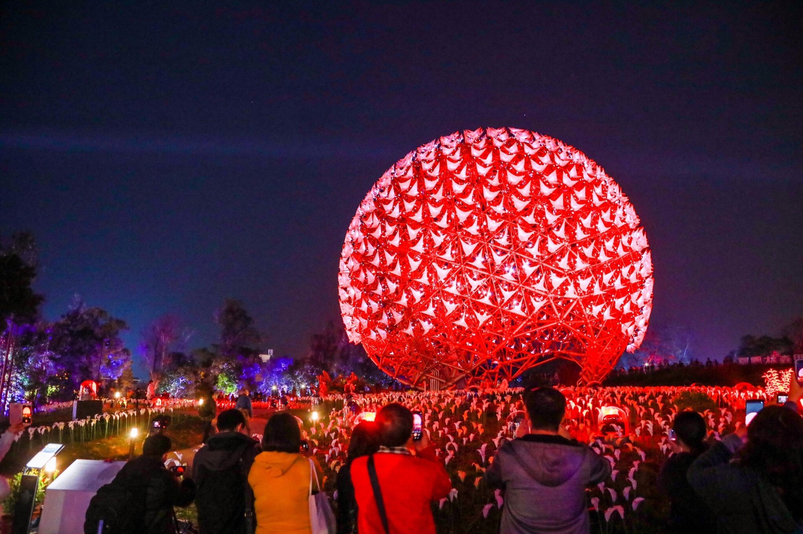 台灣燈會主展區2月8日在后里森林園區與馬場盛大開幕,森林園區主燈「森生守護-光之樹」每晚絢麗展演搭配震撼音樂,開幕至今閃耀台中夜空;花博時期備受矚目的巨型火紅花朵「聆聽花開的聲音」,由原設計團隊豪華朗機工改造換上雪白外衣,以嶄新樣貌《聆聽花開-永晝心》繼續點亮森林夜空。