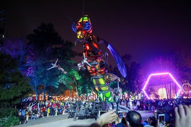 副展區去年12月在文心森林公園點燈,台中市政府特別引進「戽斗星球」、「熱帶水果鳥」等國際IP授權,引爆熱潮!展區內有生肖遊園地、熱帶叢林、節慶嘉年華、繽紛世界、國際明星會5大燈區,共52座燈組,加上放大版的扭蛋明星,呼應副展區「童趣樂園」主題。