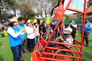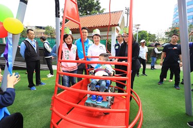 今天活動現場不少坐輪椅的小朋友有機會玩溜滑梯和鞦韆,紛紛露出大大的笑容,玩得相當開心,直呼「好好玩!還要再玩一次!」。瑪利亞社會福利基金會園長陳怡君表示,無障礙遊具最重要的意義在於共融,讓老弱婦孺、障礙者都可以共同使用,對身障孩子來說,可以較不費力的和一般孩子玩在一起,也對他們成長過程有幫助,遊樂時可以增加他們的感官刺激,在遊戲中成長。