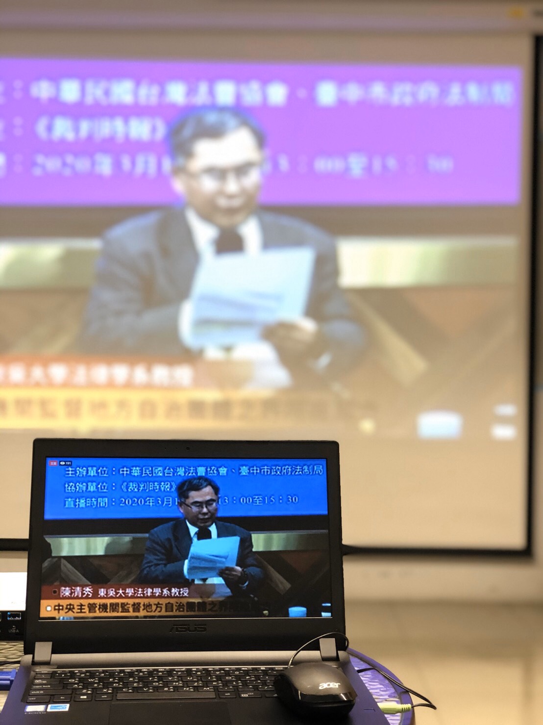 台中市政府法制局昨(10)日與中華民國台灣法曹協會、裁判時報雜誌社合辦「中央主管機關監督地方自治團體之界限座談會」,一改以往「現場舉辦」,以「線上直播」進行,由前司法院副院長蘇永欽擔任主持人,邀請法界專家學者針對「地方自治權限」相關議題進行探討。法制局長李善植感謝與會人士提出精闢看法,並回應線上提問,相關見解將成為各級政府未來施政參考。