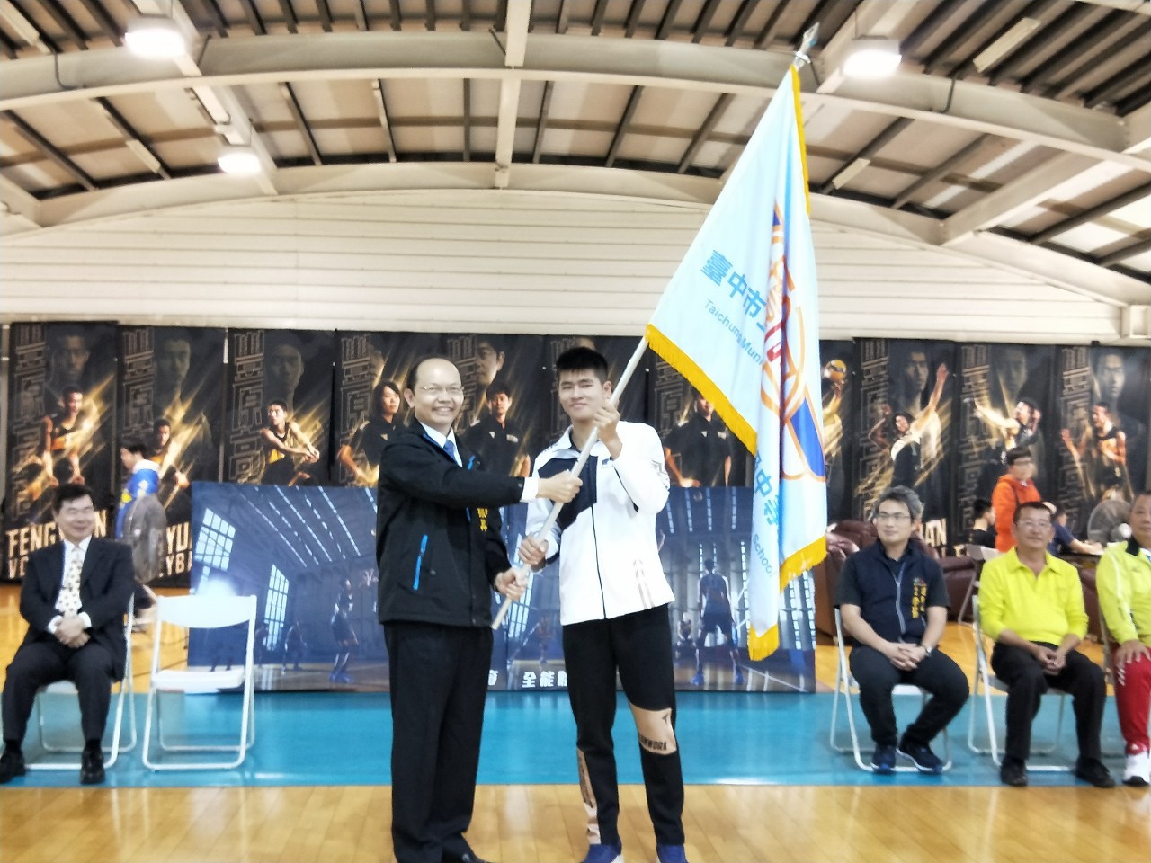 108學年度高中排球甲級聯賽(HVL)決賽在台北和平籃球館登場,去年冠軍豐原高商男子排球隊蓄勢待發,本周末將挑戰七連霸,盼再創歷史佳績。台中市政府教育局長楊振昇昨(12)日到豐原高商排球訓練場地授旗,並致贈獎勵金,幫選手們加油打氣,預祝旗開得勝。