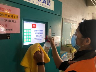 交通局長葉昭甫表示,台中市公有停車場每日服務上萬人次,為加強防疫,交通局要求各公有停車場維護廠商,每日加強清潔、定時消毒場內繳費機、觸控螢幕、退幣孔、樓梯扶手、電梯按鍵、磁扣等民眾常接觸的部分,讓民眾安心操作。