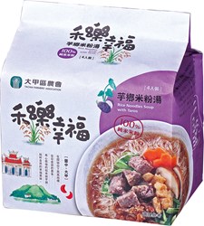 梧棲區農會的「涵吉麵」以地瓜為原料,含有豐富維生素、鈣、磷、鉀等營養元素,老師傅傳統純手工粹煉,相當美味。潭子區農會的馬鈴薯麵Q彈有勁、滑順耐煮,添加馬鈴薯更營養,食品廠經美國FDA及國際FSSC22000驗證通過,品質優良。大甲區農會生產的「芋鄉米粉湯」,以百分之百純米製作,加入特級大甲新鮮芋頭,提供最自然純粹的幸福美味,歡迎支持台中在地農產。(3/21*13)*農業局