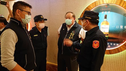 為預防密閉式公共場所成為防疫破口,台中市政府加強稽查力道,繼日前突擊臨檢大型夜店,昨(24)晚再由副市長陳子敬親自率隊,前往酒店、KTV、夜店等大型娛樂場所聯合稽查,繼日前5家知名大型夜店,今日再有10家舞廳、KTV、卡拉OK、電子遊戲場業者響應停業2周,全力防堵疫情風險。