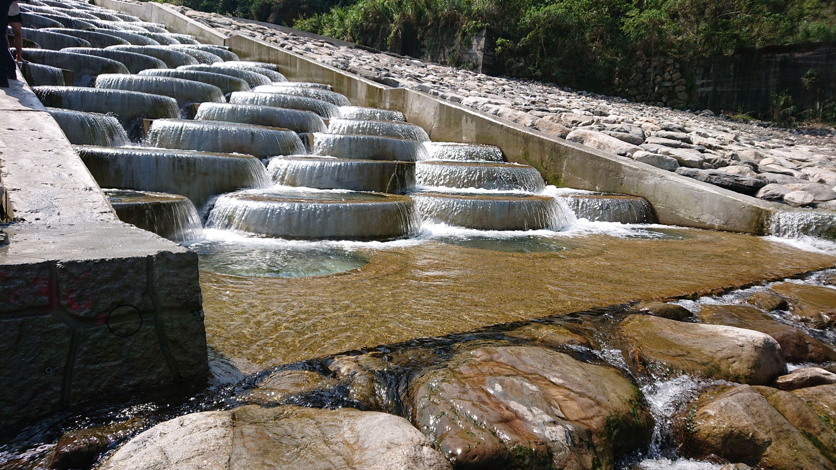 林務局東勢林區管理處表示,烏石坑溪被譽為「小土耳其棉堡」的美景,實為今年2月份完工的緩坡式固床工程,主要為防止上游防砂壩基礎嚴重掏空,以就地取材方式進行工程設計,達到溪床緩坡化效果。(3/26*13)*農業局