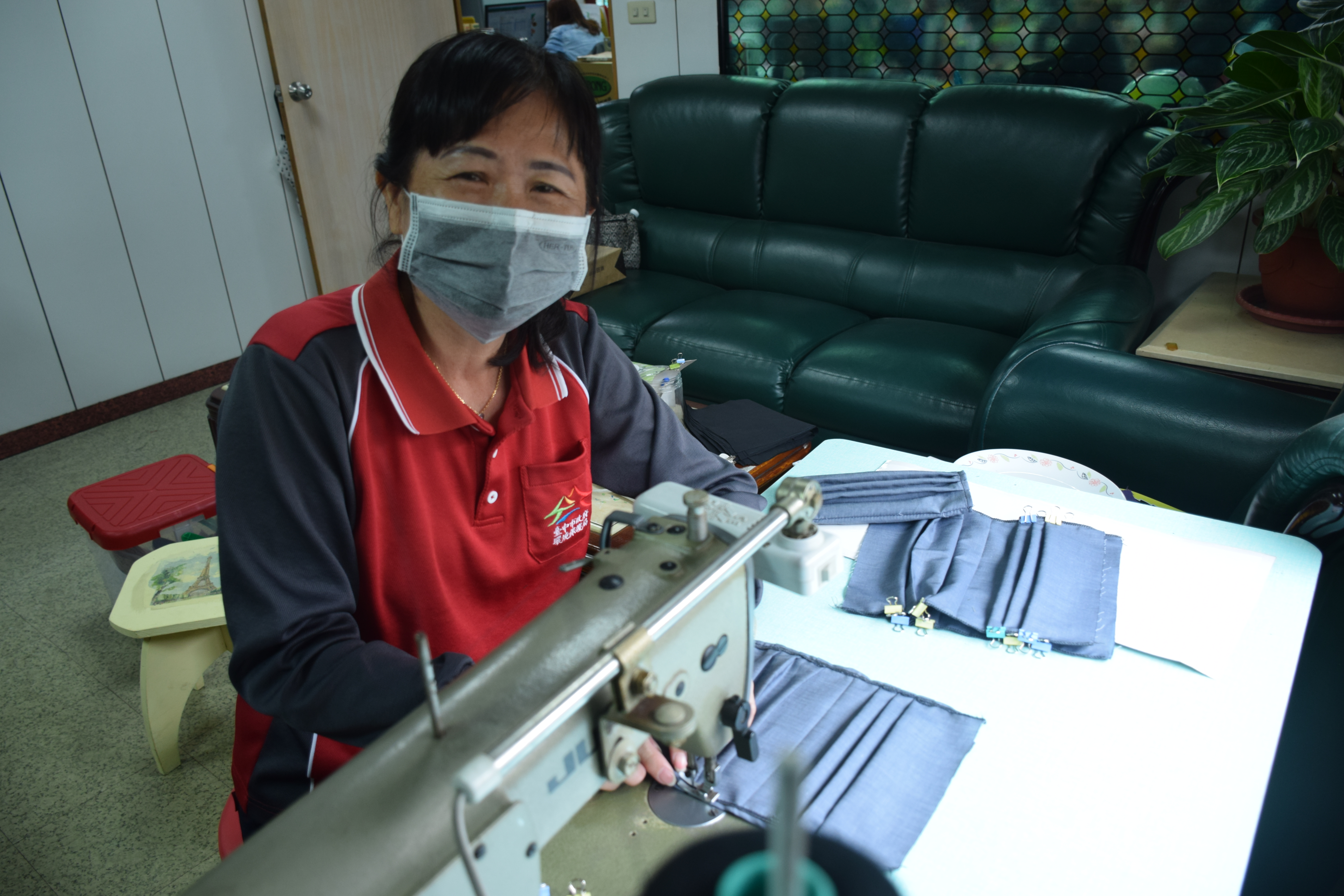 南屯區清潔志工隊長張秀暖說,特地挑選透氣、觸感好的棉質布料,製作口罩套從剪裁、車布邊、燙布、摺線到車縫,大概需要半小時,但與環保志工分工合作像生產線、工序、志工負責等,速度比較快。此外,清潔人員辛苦收運垃圾,接觸民眾也多,志工們能幫助清潔人員防疫,非常高興。
