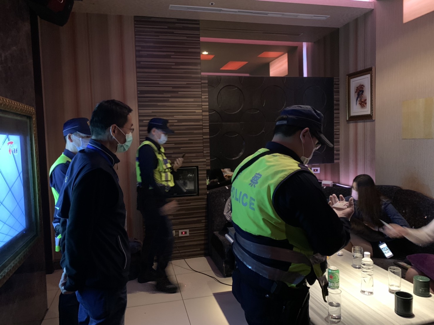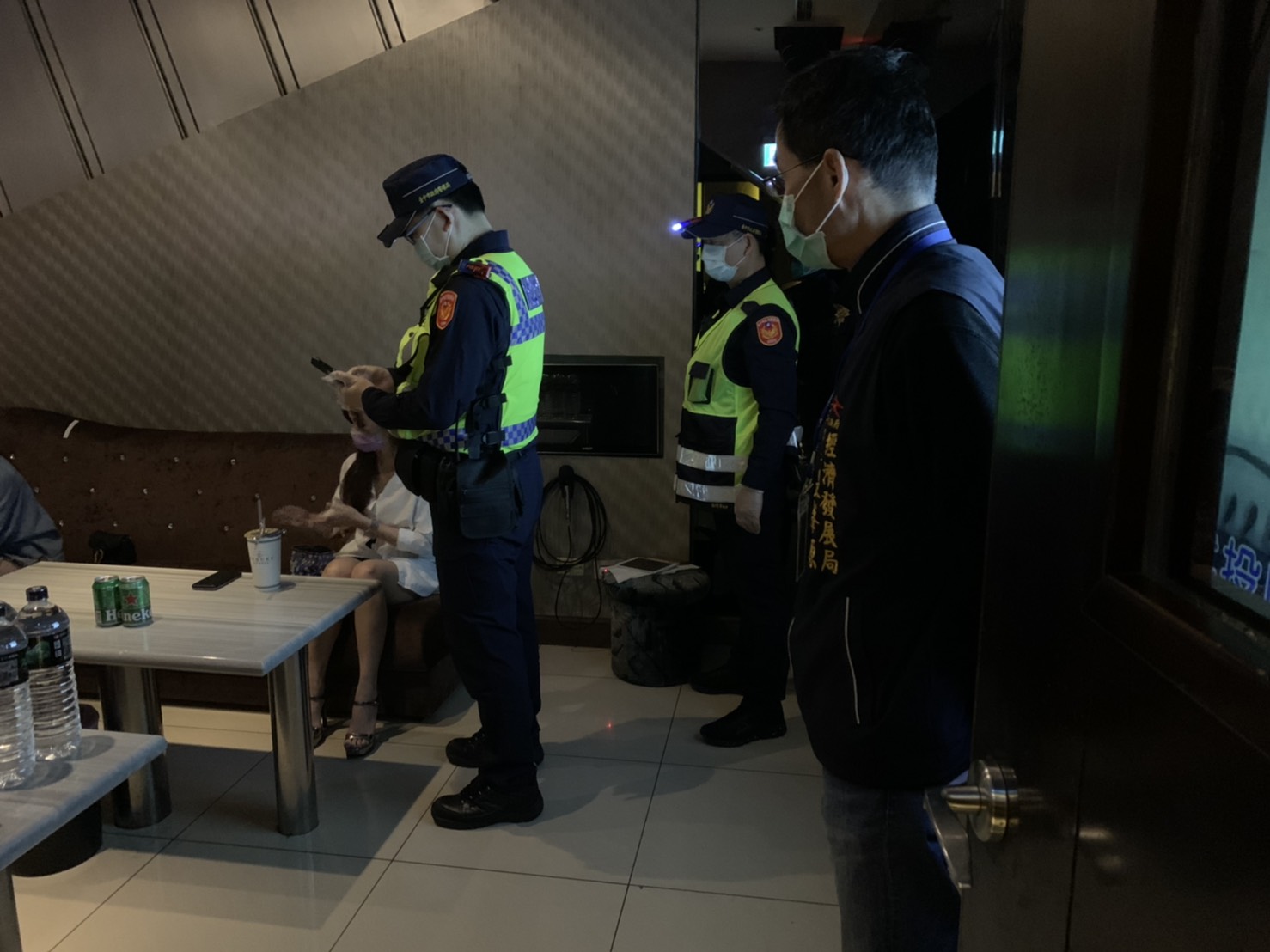 針對昨日稽查情形,經發局長張峯源說明,市府9、10日聯合稽查8家舞廳、視聽歌唱業、夜店業、飲酒店業,業者與消費者均遵守規定,未有違規情事發生。昨日查核的視聽歌唱業者也配合市府政策,已開始執行實名制、出入口測量體溫等防疫措施。