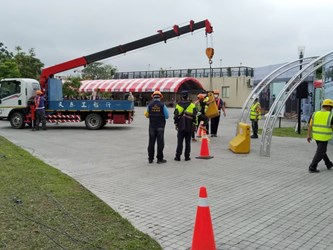 汛期將至,台中市政府不鬆懈!副市長陳子敬及副市長黃國榮擔任統裁官,昨(23)日率領警、消、環、衛、西屯區公所及神岡區公所等單位,於西屯區朝馬路520號及神岡區豐洲里葫蘆墩公園辦理「109年度水災防汛實兵演練」,演練中假想強烈颱風夾帶驚人豪雨,導致溪水暴漲,相關單位立即疏散周邊危險區域居民,搶救受困民眾,防汛實兵演練也讓相關單位熟悉通報搶救流程,增加救災防災熟練度。