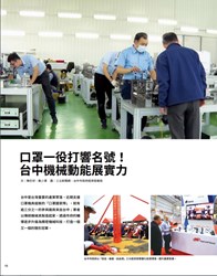 有關精彩內文,新聞局說明,疫情造成全球口罩荒,台中「機械動能展實力」,口罩機具組裝的口罩國家隊就有超過三分之一的台中工具機械廠商參與,4月號「漾台中」專文介紹台中機具產業如何從傳統製造業起家,逐步成為未來科技新星,看完絕對為台中驕傲。