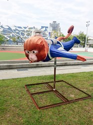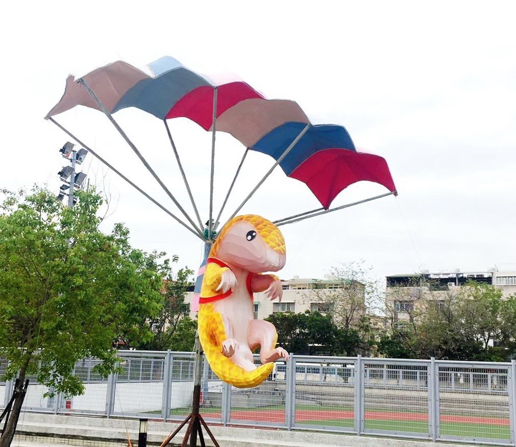 運動局長李昱叡表示,此次移至大里運動公園的「極限運動燈組」,包括踩著滑板的台灣黑熊、穿著飛鼠裝滑翔的台灣獼猴,還有帝雉在一旁踩著直排輪,悠然自得滑行,以及百步蛇正在挑戰衝浪,每隻台灣動物都熱血沸騰地挑戰自我極限,模樣逗趣可愛。