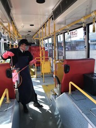 交通局長葉昭甫表示,因應疫情,台中市計程車、公車及場站每日均進行消毒,服務人員全程佩戴口罩;在iBike站點、公共停車場中民眾接觸頻繁的取票機、繳費機、磁扣等部分,也要求業者每日就車輛及各項設備進行消毒,交通局並不定期派員稽查。