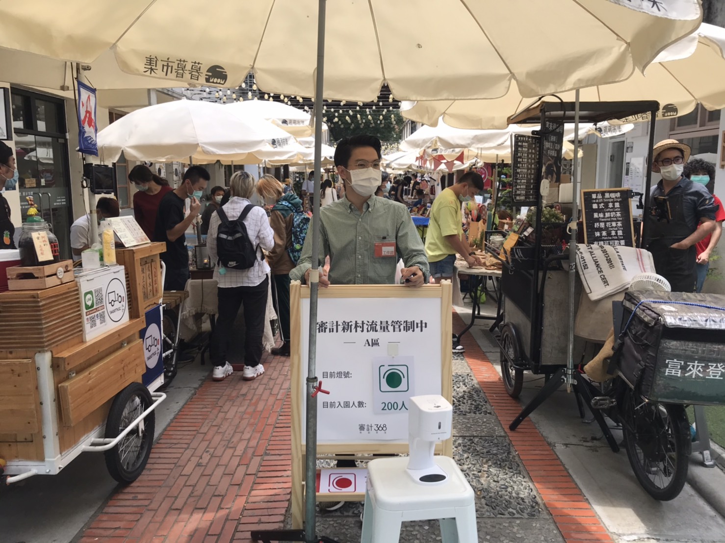 五一勞動節連假,為避免出遊人潮聚集,台中市熱門景點審計新村文創園區採取人流監控,將園區分為A、B兩區,各於管制入口處以紅、黃、綠燈號提醒遊客目前人數,若燈號顯示紅燈,代表管制人數已滿,將暫停遊客進入。此外,園區內公共區域及公廁定時清潔消毒,並加裝乾洗手於7處消毒點,讓民眾可以安心購物。