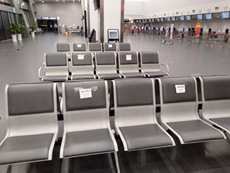 觀旅局表示,昨日下午6時於現場實際再次查訪發現,台中航空站與免稅店業者已依市府建議,改善人流管制作為與防疫相關措施,對於入場民眾執行量測體溫、手部消毒、要求入館內應全程正確配戴口罩、排隊貼紙維持1.5公尺等候距離、座位區以梅花座方式安排、嚴格執行賣場容留人數管控等措施,以確保參與民眾身體健康安全。
