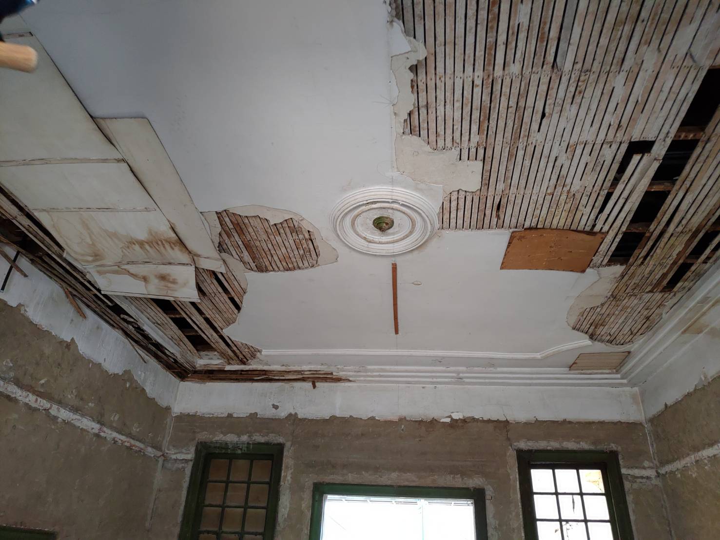 此次工程,修復團隊拆除中央棟天花板的夾層,發現原始結構的「木槢灰泥天花板」,以木條為基底再塗上熟石灰的設計,是典型的日式建築特色。另有一座原始的燈座設計,是橢圓形的灰泥裝飾,相當古樸雅緻,展現樸實又講究的建築風格。同時,南北兩棟的木造宿舍發現「帳子門」夾層中,留有過去辦公人員用毛筆書寫的稿紙,以及民國時期的報紙,修復工程屢見驚喜。(5/3*15)*文化局