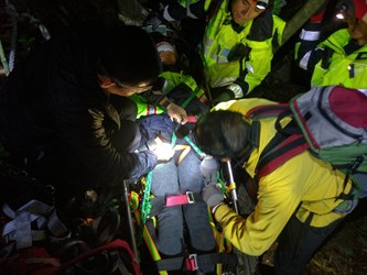 消防局表示,年逾70歲家住台北市的許姓老夫婦,懷念年輕時攀登和平區鳶嘴稍來山,欣賞台灣特有種植物「紅榨槭」美景,去年12月初再次攀登,但因錯估日落時間及體力不濟,摸黑行進時,妻子跌落懸崖,和平及東勢分隊在接獲報案後立即前往救援,在漆黑的山區迅速前進、越過岩壁,並以垂降方式找到傷者,緊急救護處置。