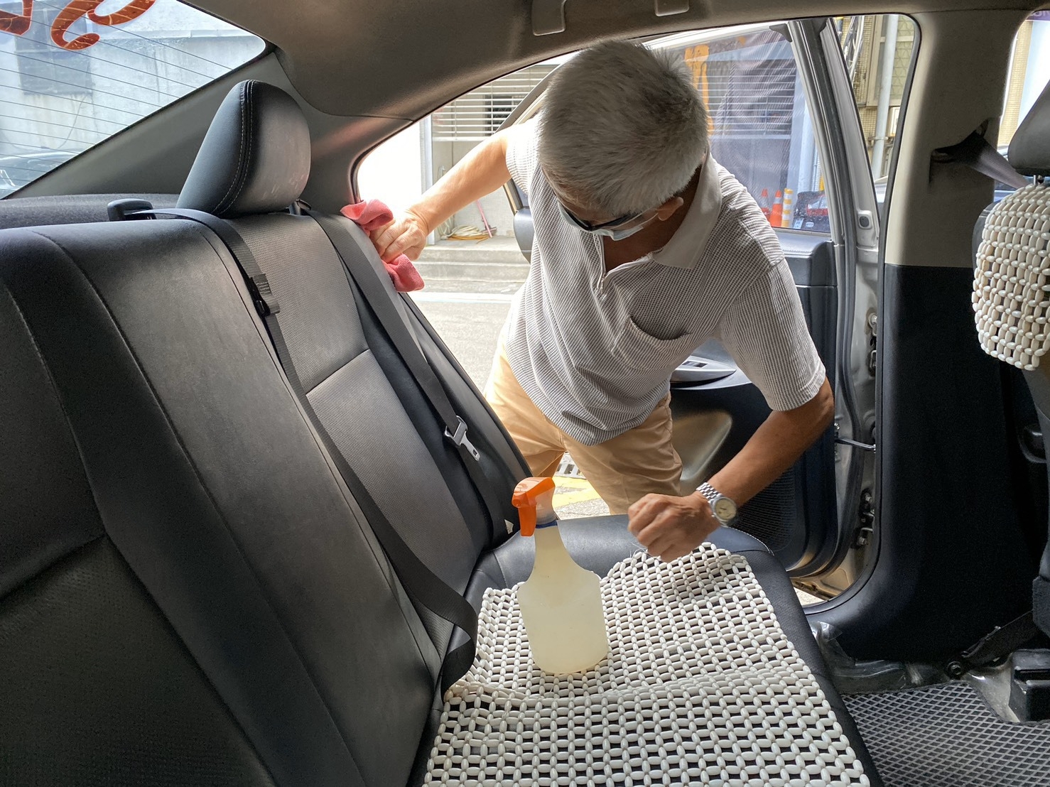 計程車駕駛使用次氯酸水消毒