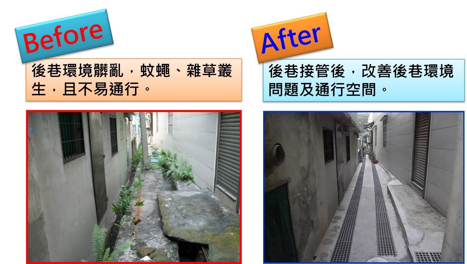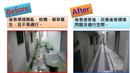 後巷接管後,改善後巷環境問題及通行空間