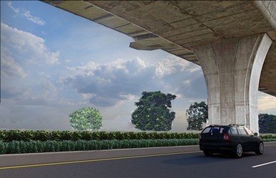 紓解台3線車潮,並配合交通部公路總局辦理台74線大里及霧峰地區增設匝道工程、營建署延伸中山路通往台74線道路工程,台中市政府建設局分兩期闢建大里聯絡道高架橋下平面道路,第一期工程已於今年初開工。為讓道路符合民眾所需,更考量都市美感,市府聽取地方建議,規劃調整滯洪與排水設施,並增設3處開口供橫向通行,讓未來通行更便利。