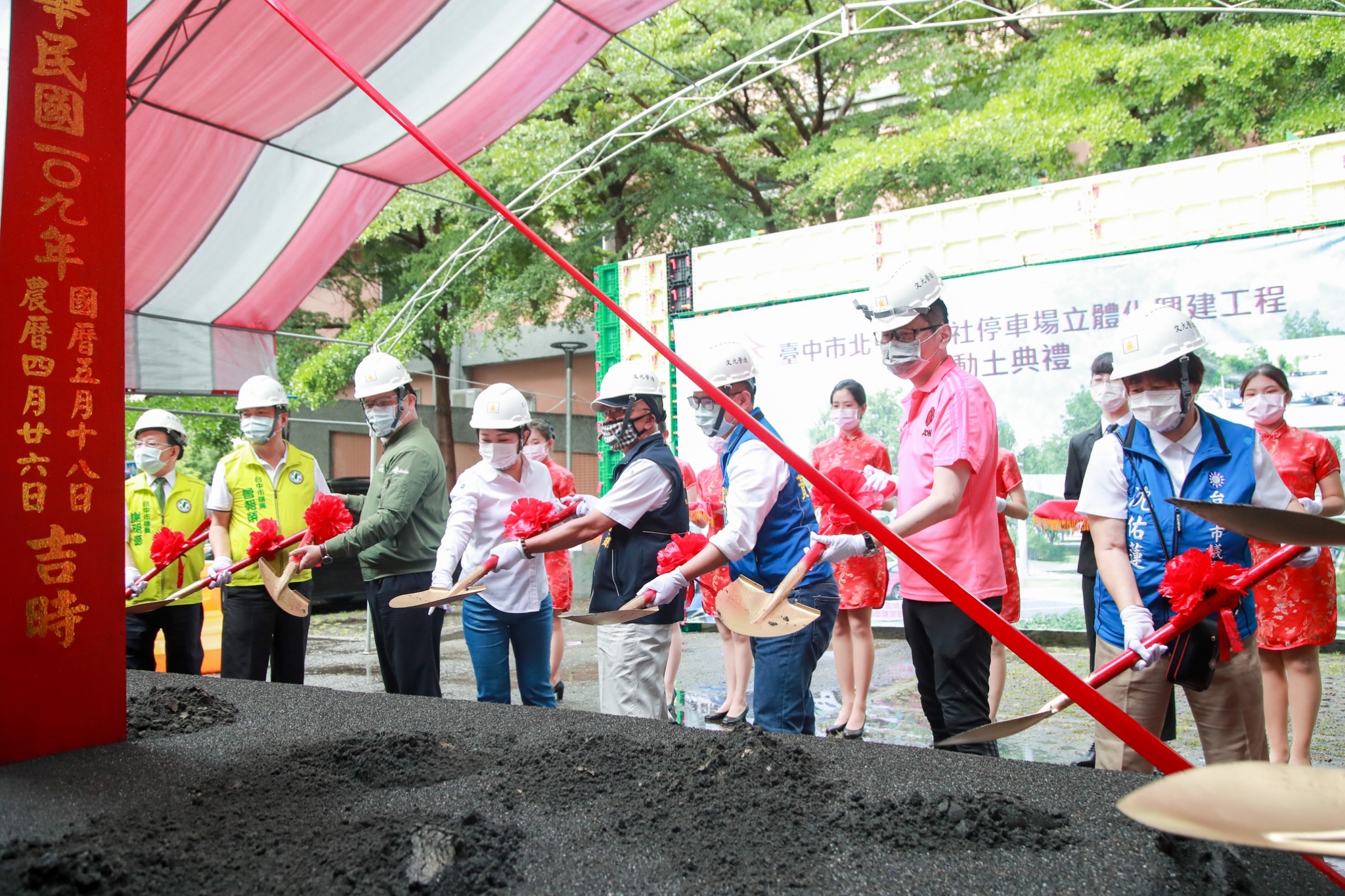 北屯區舊社公園周邊住商大樓林立,鄰近台鐵松竹車站與捷運綠線松竹站,停車需求大增,對此,台中市政府交通局規劃在原有舊社公園平面停車場,興建地下2層的立體停車場,提供250席汽車、115席機車,合計365格停車位,市長盧秀燕今(18)日出席開工典禮表示,工程完工後將滿足當地住戶、未來捷運綠線與台鐵松竹站的轉乘需求,帶動地方發展。