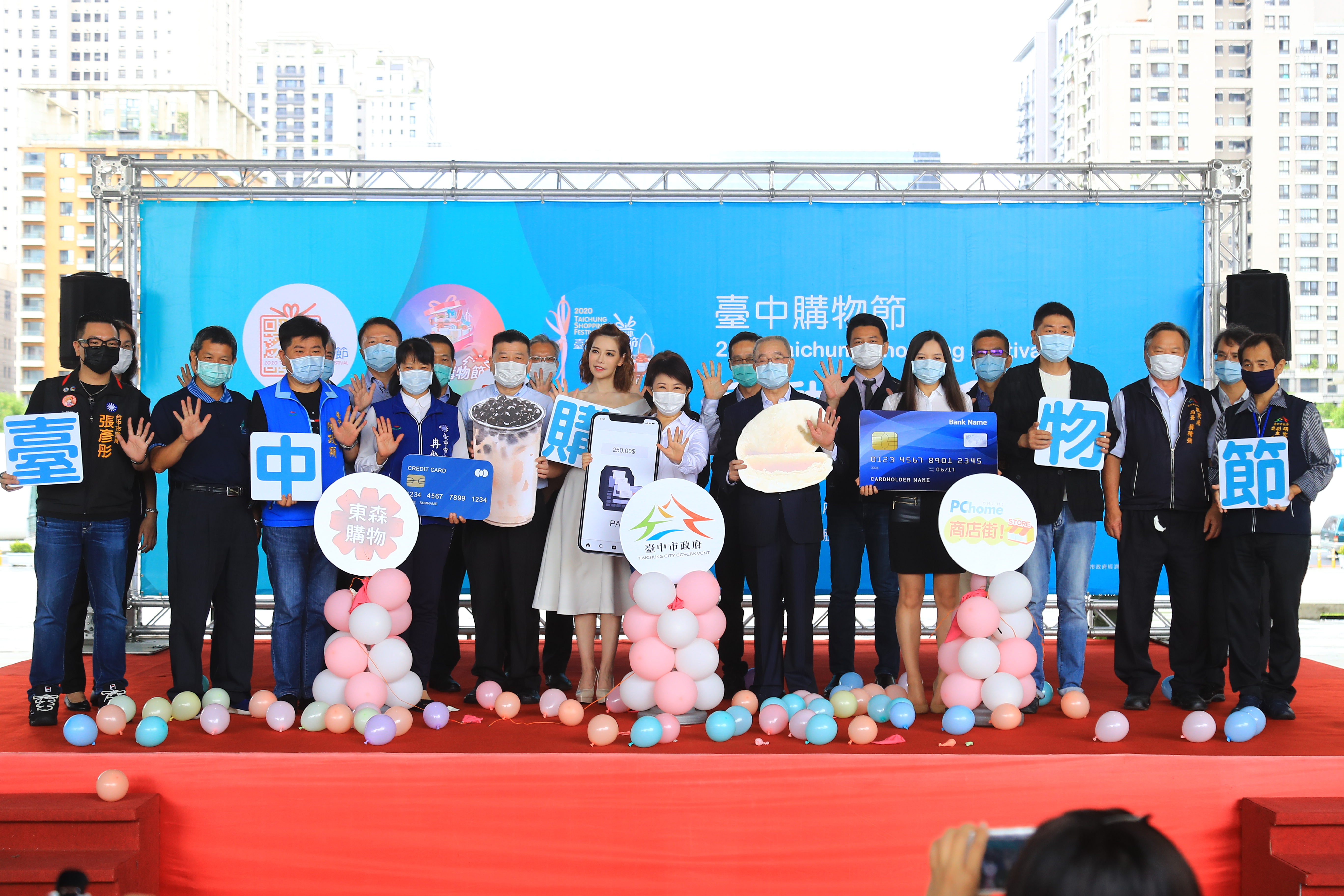 盧市長表示,市府去年「第1屆台中購物節」,共吸引2萬家商店參與、超過20萬人登錄下載App參加抽獎、銷售金額超過25億元,今年目標破紀錄「把餅做大」,除鼓勵民眾在實體店家交易外,因應疫情,也鼓勵民眾在線上或電視購物,台中好吃、好買、好玩、好住,消費又可抽大獎,歡迎大家來台中。