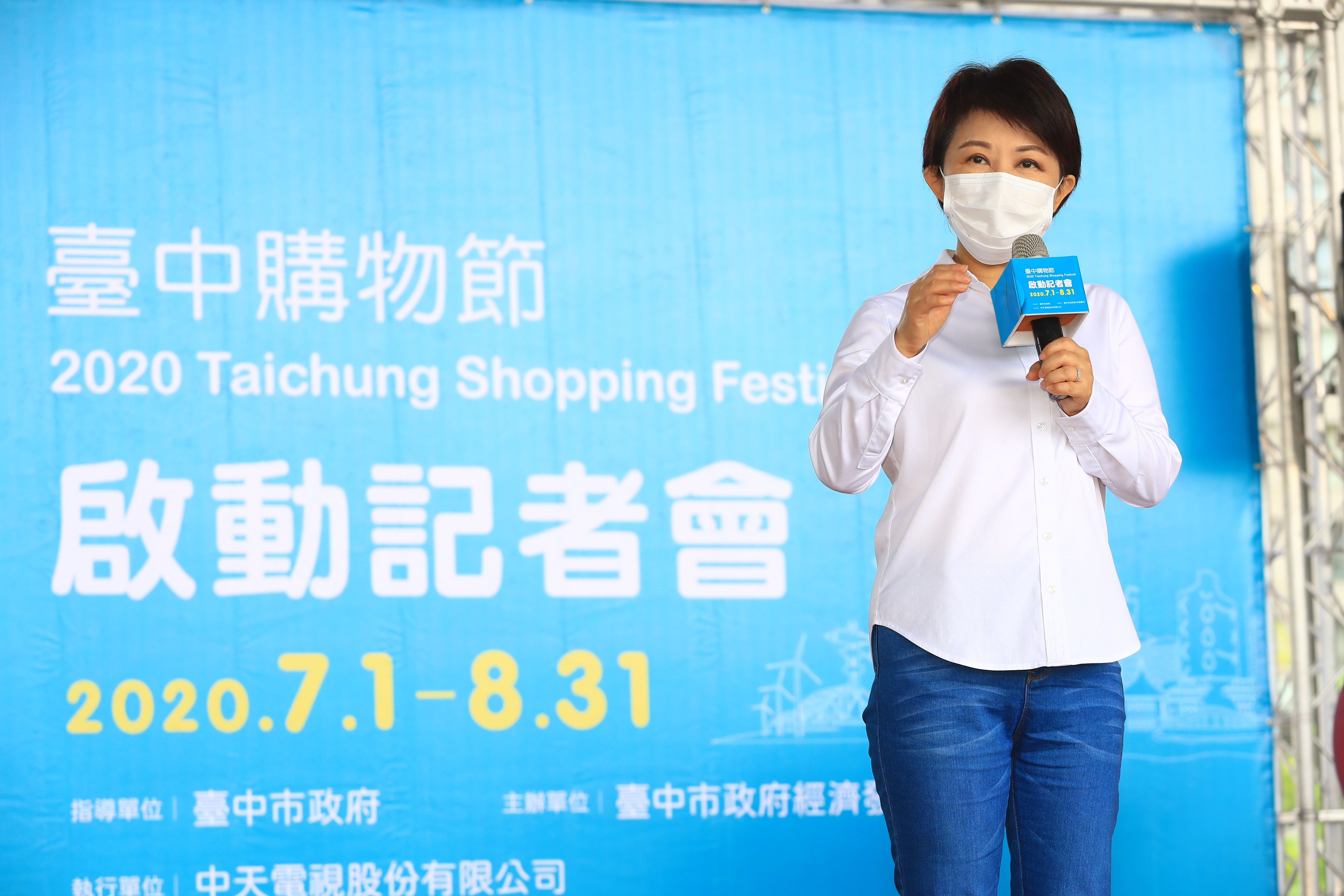 經發局今(18)日舉行「第2屆台中購物節」啟動記者會,邀請電視購物銷售天后斯容站台,與市長盧秀燕一搭一唱介紹台中名產,場面熱鬧;盧市長也親自揭曉第2屆購物節開放票選的主視覺及副標,主視覺以「打開禮物盒的驚喜」為設計概念的台中名產禮物盒獲最高票,副標語則以「台中五好購物節」最受民眾喜愛。