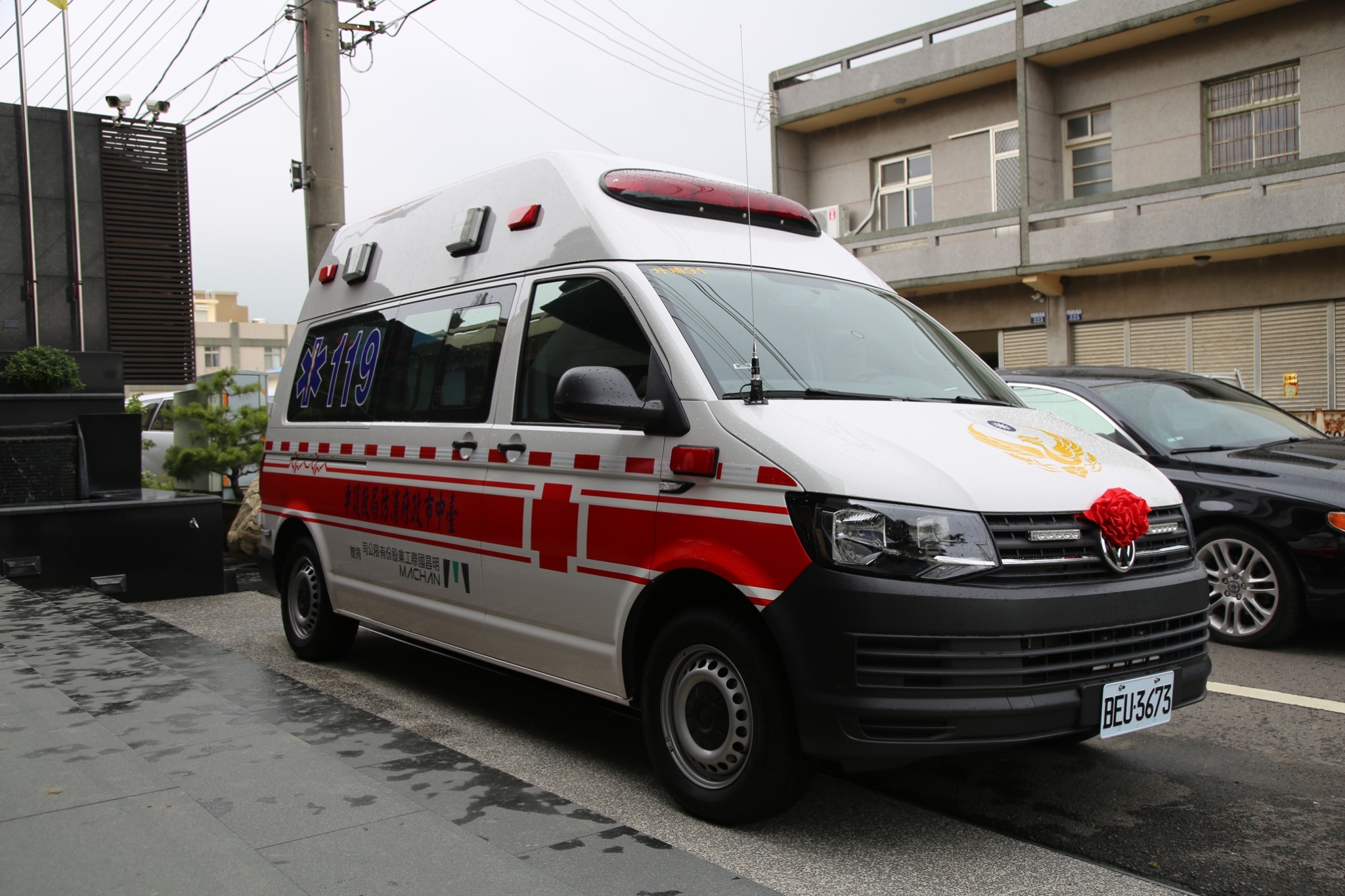消防局長曾進財表示,這輛價值340萬元的福斯高頂救護車,將分配給第五大隊外埔分隊使用,高頂救護車的優點在於空間寬敞,有利於救護人員進行各項急救處置,並配有一套完整救護裝備,包括急救包、氧氣組、電動擔架、喉頭罩、AED、抗震血壓監視儀與血氧濃度計等器材,對傷病患的急難救助極具效益,有助提高性命挽救的成功率。