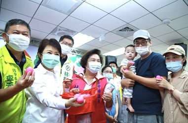 盧市長今日到大里區,參與甲興托嬰中心滿月慶祝活動,並親自了解家長托嬰需求,關心該中心的托嬰狀況,並逐一發送滿月紅蛋,與小孩子一起玩遊戲,訓練他們的手眼協調能力,現場氣氛溫馨熱鬧。