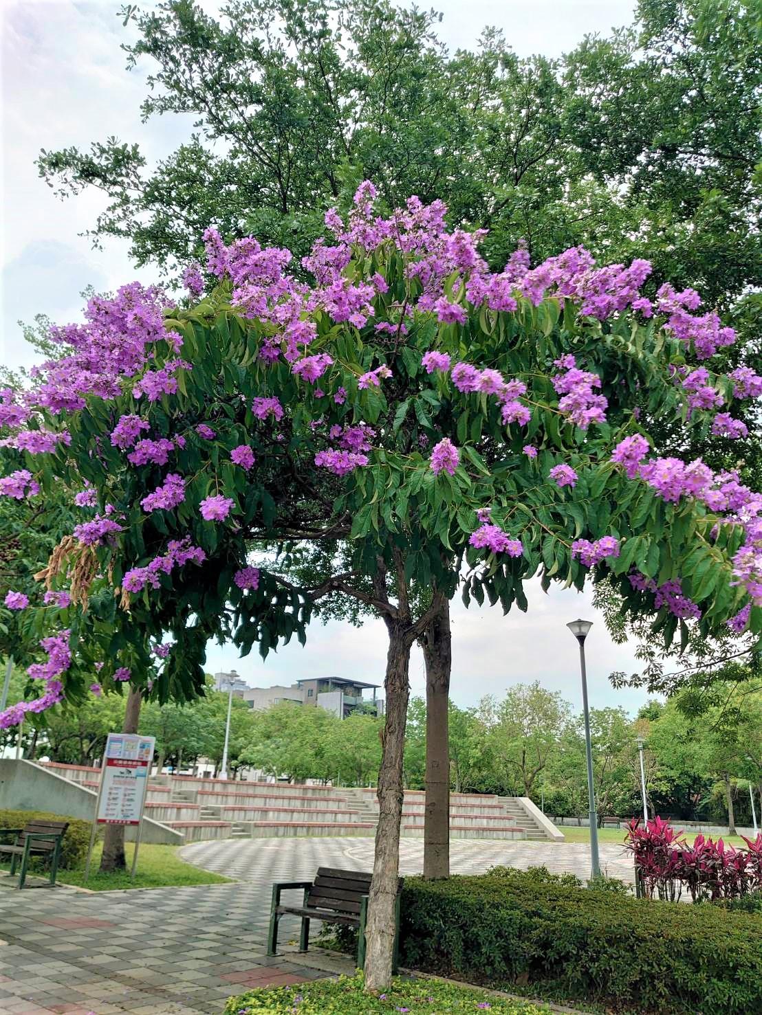 此外,俏麗迷人的「爆炸樹」大花紫薇,於每年6至8月間綻放,遠處觀看如同從樹頂爆炸開來,紫色花朵除引人注目外,還有變妝本領,清晨花瓣初開時呈現鮮紫色,午間轉變成玫瑰紅,至傍晚則呈現粉紫色。