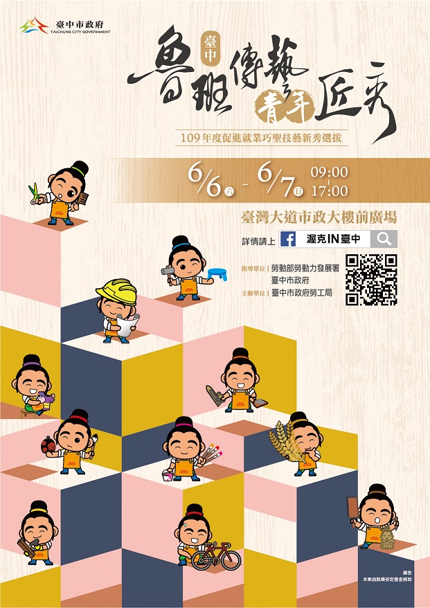 此次原訂516日、17日舉行的「109年度促進就業巧聖技藝新秀選拔」,因應新冠肺炎疫情,實作競賽延期至66日、7日舉行。獲獎作品暫訂於619日至710日於市府惠中樓1樓展出,獲獎選手將獲邀於710日於市府公開頒獎表揚。更多活動相關訊息詳見「台中市政府勞工局網站/公告訊息/巧聖技藝新秀選拔活動」(網址:https://www.labor.taichung.gov.tw/1238453/Lpsimplelist)(5/30*15)*勞工局