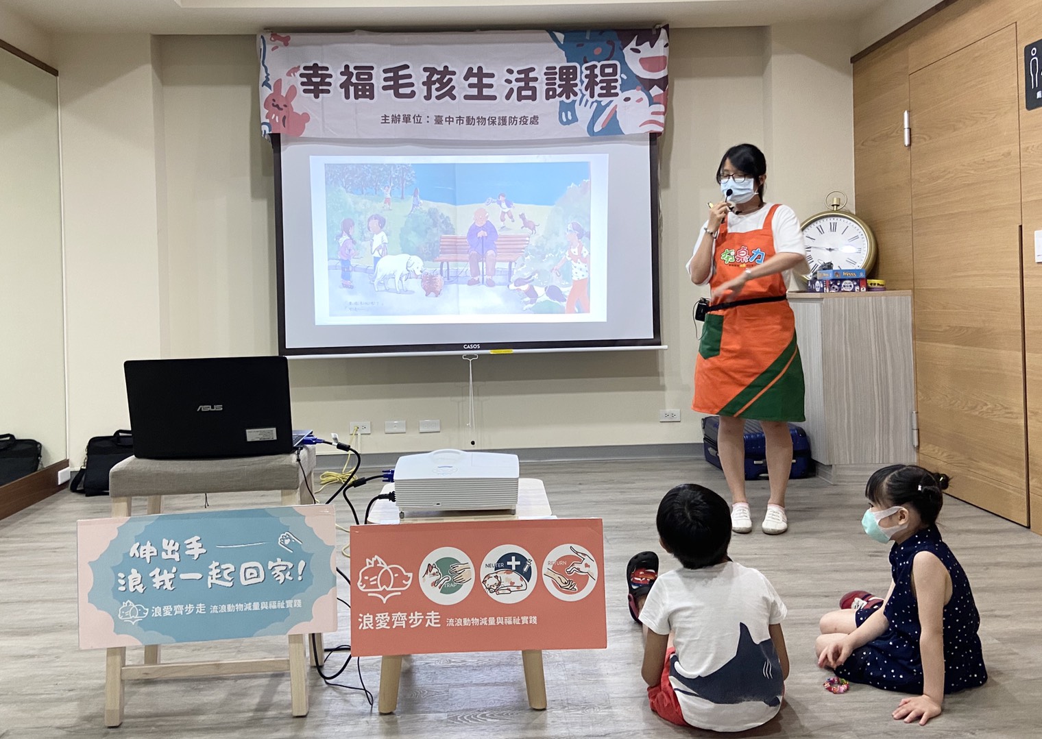多數孩子對飼養寵物十分熱衷,然而在飼養寵物前,卻鮮少想到除與寵物玩耍外,也需照顧其基本生理需求,為讓孩子們在飼養寵物前審慎思考是否能成為一個好主人,台中市動物保護防疫處日前於大里區公正段共好社宅舉辦繪本導讀,透過導讀與桌遊,帶孩童認識飼養寵物所需負起的責任。
