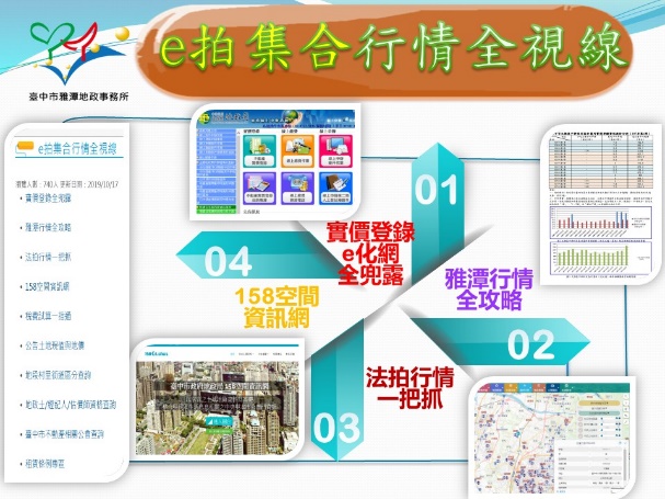 台中市雅潭地政事務所為促進房地產交易資訊公開透明,並使民眾容易理解判讀,建置「e拍集合行情全視線資訊查詢平台」,完整揭露實價登錄、法院拍賣等資訊,方便民眾查詢。