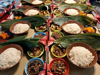 昨日活動採事前網路報名,由市場攤商「來來古早味」提供糯米及粽料,再由包粽達人柯素娥帶領親子摺粽葉包粽;市場管理員也變身「小丸子姐姐」在菜市場說故事及有獎徵答;市場自治會也準備水果、炸物及甜品等豐盛點心供民眾享用,與會家長感謝市場用心,表示以後除了採買,還會再帶孩子來參加市場活動。
