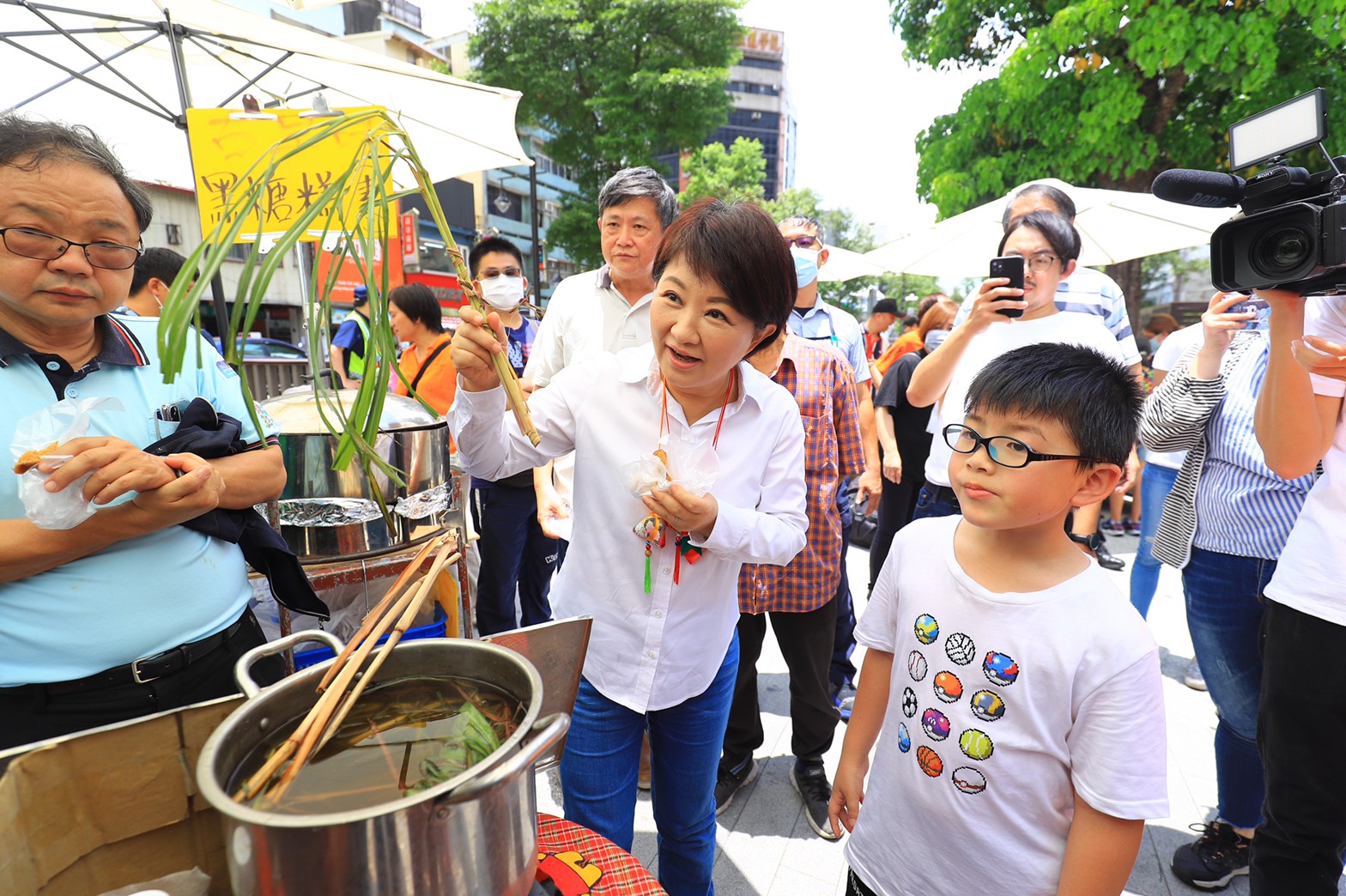盧市長隨後前往東協廣場逐一巡覽各傳統文化攤販,包括挽臉、古早味黑糖糕、茯苓糕、香茅水、雜誌攤販等,她分享香茅水可以消災解厄,並大讚黑糖糕「Q彈美味」,她也關心由街友販售的大誌雜誌營運情形,為他們加油打氣,氣氛溫馨。
