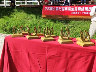 中市中坑國小獨創馬術課程 今贈畢業生「幸福馬蹄鐵獎盃」