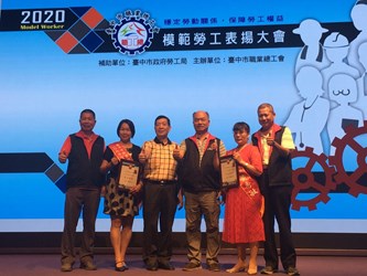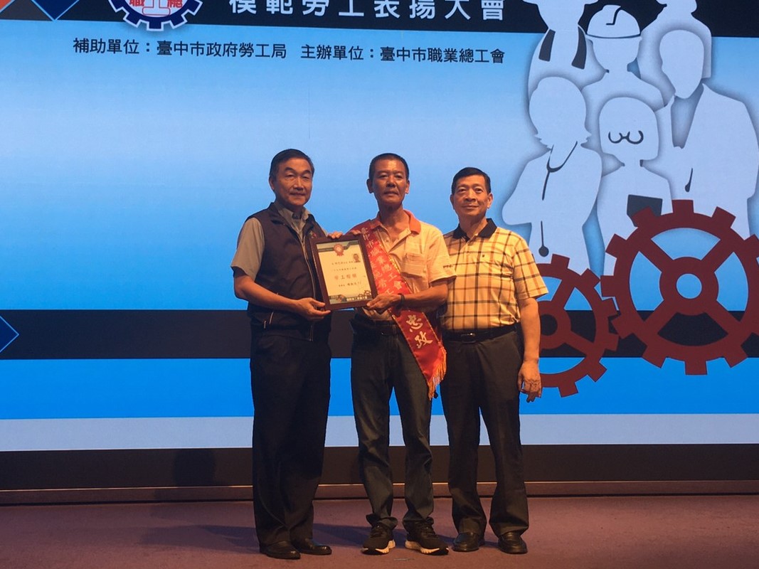 台中市職業總工會今(3)日舉辦「109年模範勞工表揚大會」,感謝在各個工作崗位辛勞付出的勞工。副市長黃國榮也代表市長盧秀燕出席致敬,他感謝台中市職業總工會理事長陳凱茂及工會人員和勞工的努力,也祝賀120位模範勞工及6位工會會務人員獲得表揚肯定,期許他們繼續服務社會、奉獻辛勞。