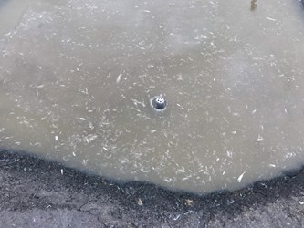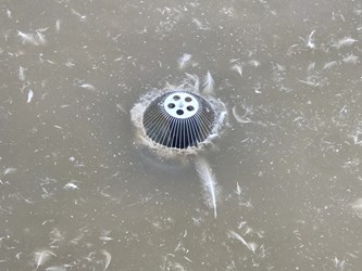 對此,市府今年優先於轄內一河岸旁家禽飼養業,示範設置異物阻絕設施,運用一般五金材料行即可購得的家中浴室排水孔毛髮過濾網,或自行DIY製作濾網,於場內排水孔或溝渠設置簡易攔截濾網,有效阻絕污染雜質排入河川水體,濾網物件具備便宜、易取得、安裝簡單,及易清除維護等優點。