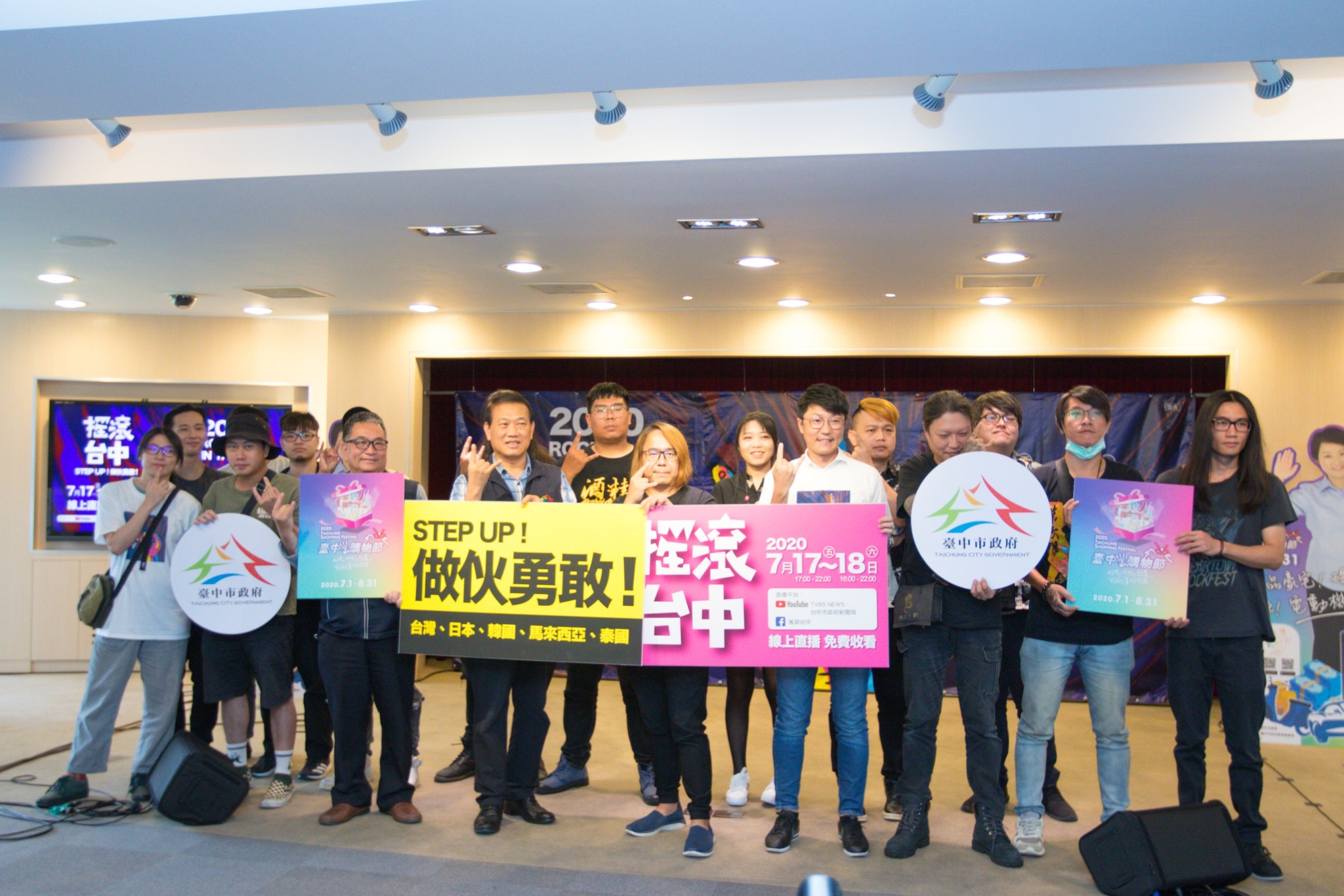 新聞局指出,搖滾台中線上直播將於7月17日下午5時至晚上10時,及7月18日下午4時至晚上10時準時上線,可在台中市政府新聞局YouTube頻道( https://www.youtube.com/user/newstaichunggov )、TVBS NEWS( https://www.youtube.com/user/TVBS )觀看,也可在臉書粉絲專頁「搖滾台中」( https://www.facebook.com/RockInTaichungMusicFestival/ )收看,全球樂迷準備一起嗨翻天吧!今日記者會包括台中市政府新聞局長黃國瑋、副局長陳佳君、搖滾台中計畫統籌老諾、市府文化局長張大春、農業局主任秘書謝公耀等人均共襄盛舉。(7/6*11)*新聞局