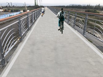 觀旅局表示,整修工程將於今年7月中旬動工,預計於109年11月完工,施工期間建議民眾可從堤防邊的一般道路通行,造成不便請民眾見諒,待完工後將為在地居民及遊客帶來更舒適、機能更健全之自行車道。