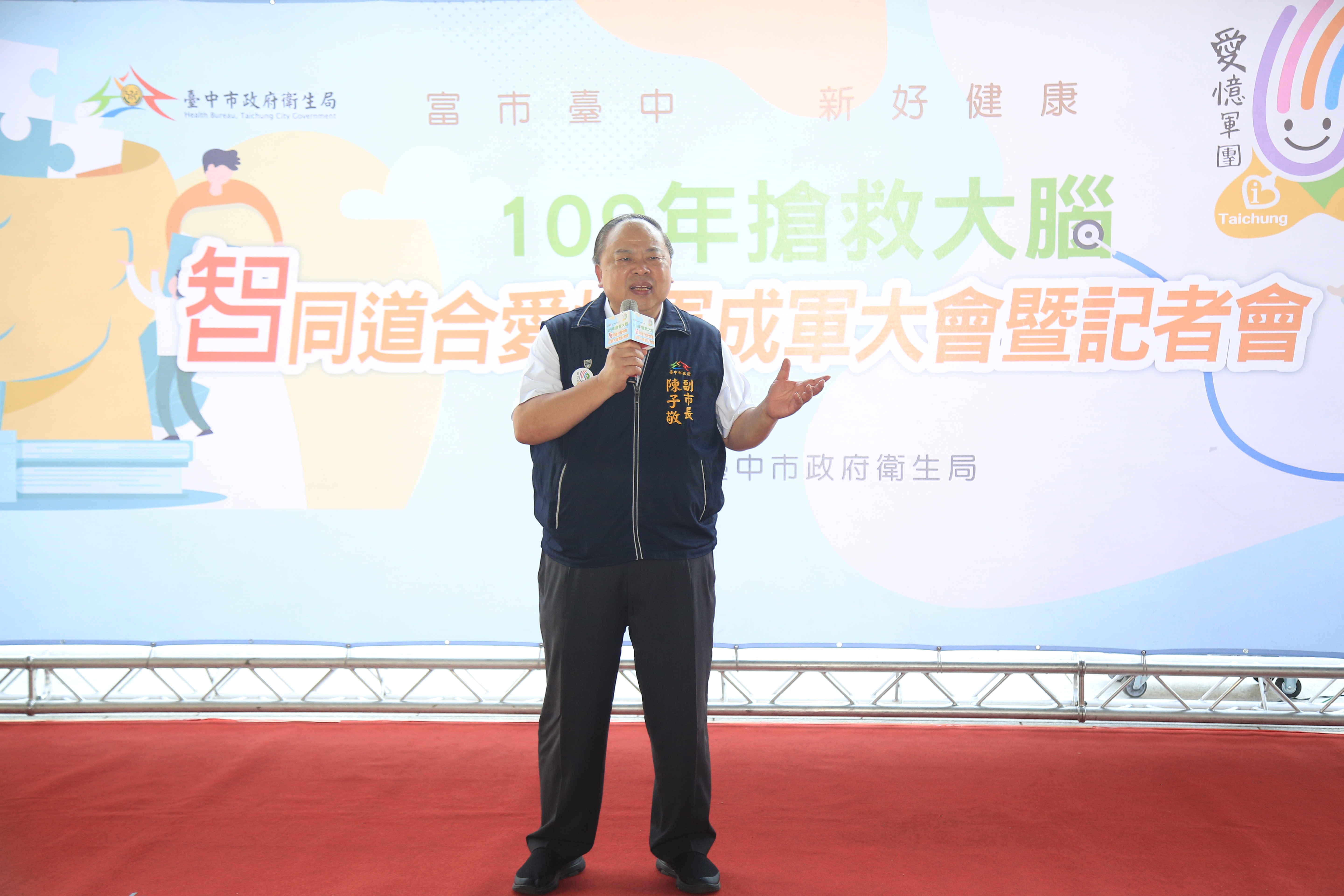副市長陳子敬表示,市長盧秀燕對社會福利政策不遺餘力,失智症已是國內重大公共衛生議題,台中市老年人口有37萬多人,以失智症盛行率8%推估,預估罹患失智症人口超過2萬9千多人。「愛憶軍團」以台語「愛伊」為諧音,該組織成立不僅協助宣導,也協助市府提供失智症患者完善照顧。