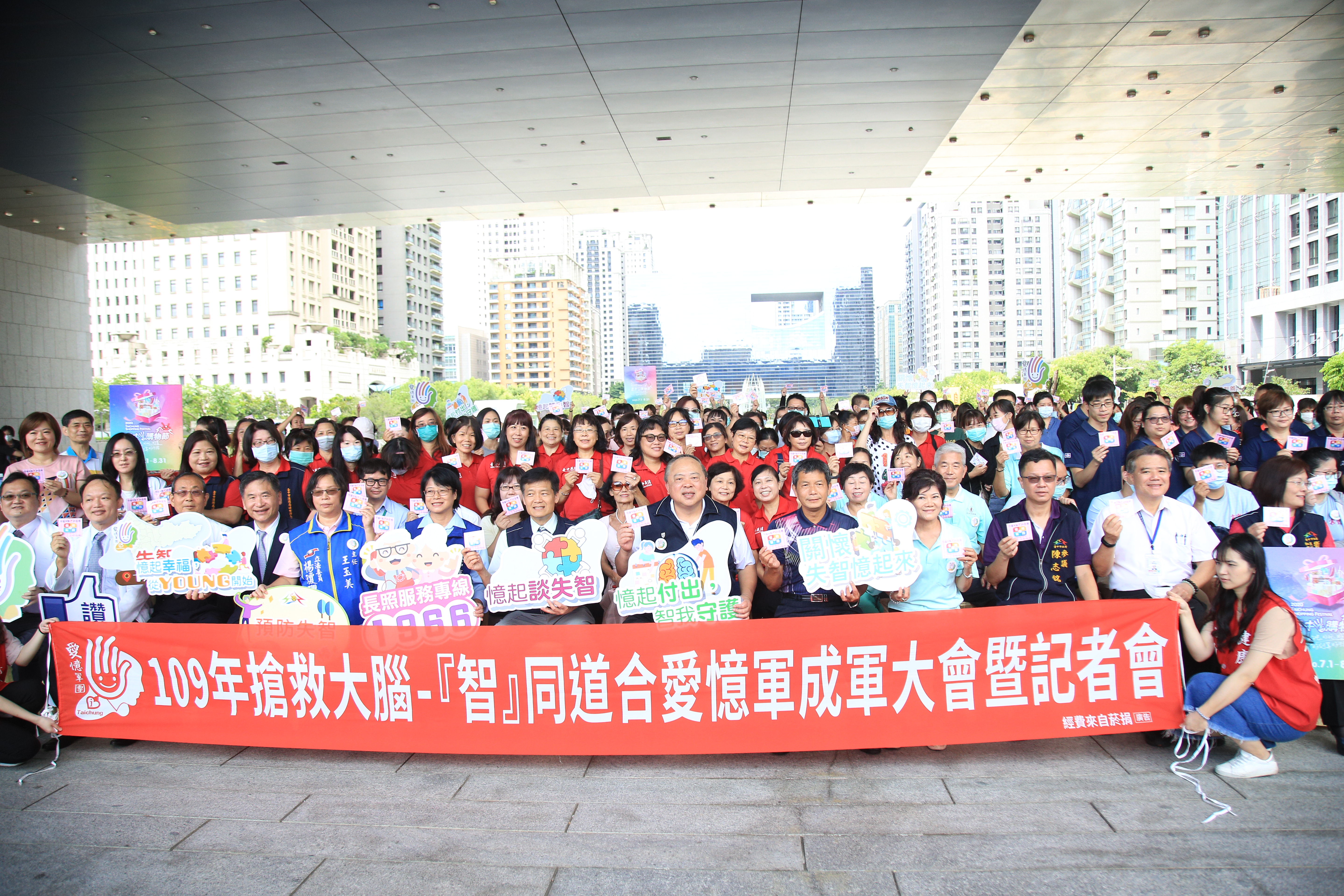 台中市政府攜手各局處所屬志工團體、大專院校、醫療院所、婦女防火宣導隊,以及全聯福利中心、統一超商等企業,今(17)日宣誓成立「愛憶軍團」,取台語「愛伊」諧音,深入鄰里建構防護網,除宣導如何預防失智症,也透過照護中心及社區服務據點等資源連結,協助照顧失智患者,打造台中為失智友善城市。
