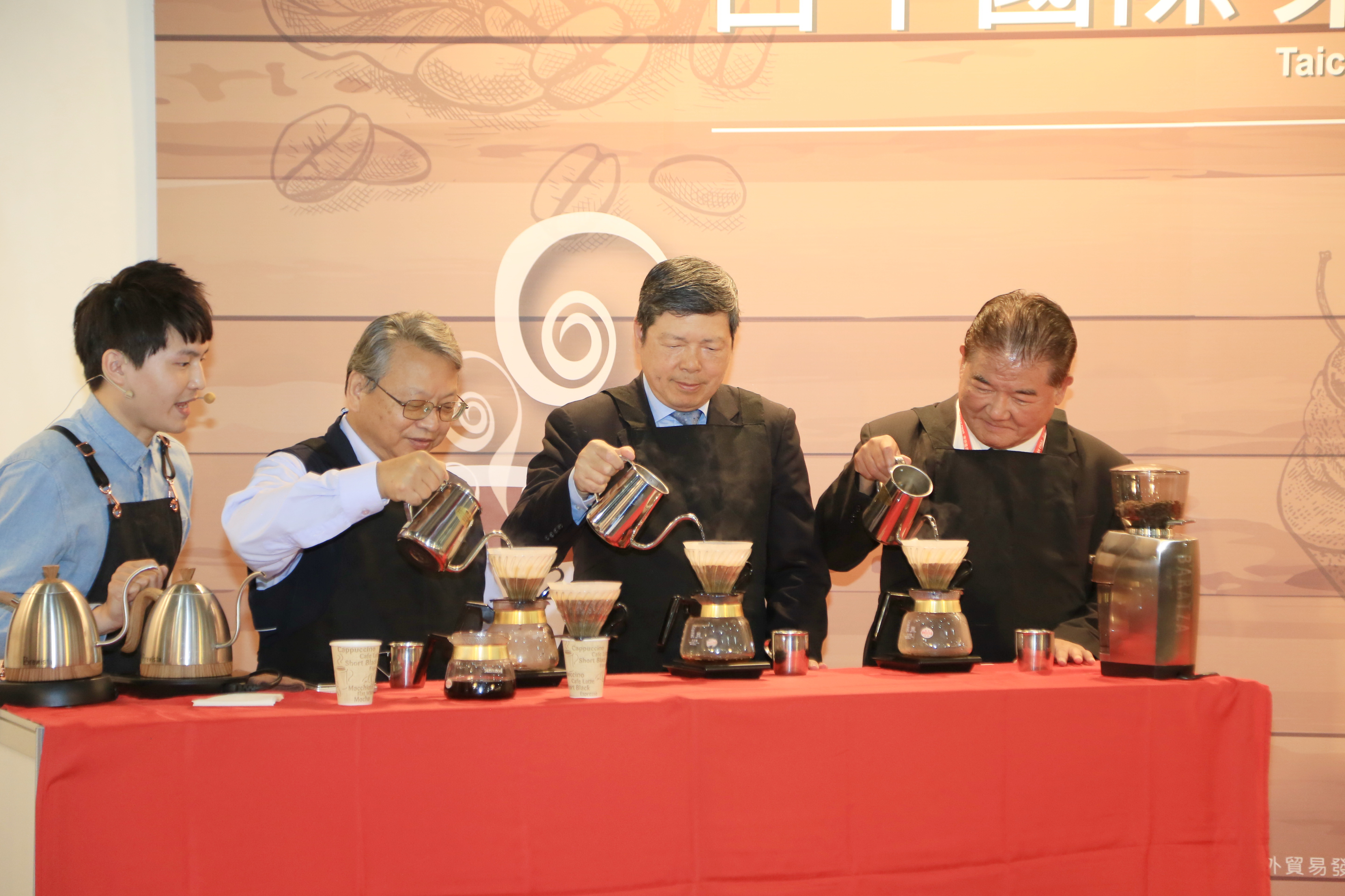 四種味蕾一次滿足!「2020年台中國際茶、咖啡暨烘焙展」結合「台中國際酒展」,即日起至7月20日止在台中國際展覽館盛大展開,副市長令狐榮達今(17)日代表市長盧秀燕參加開幕典禮,他豎起大拇指肯定商家業者的專業,並化身咖啡師手沖咖啡,邀請民眾把握機會踴躍參觀聯展。