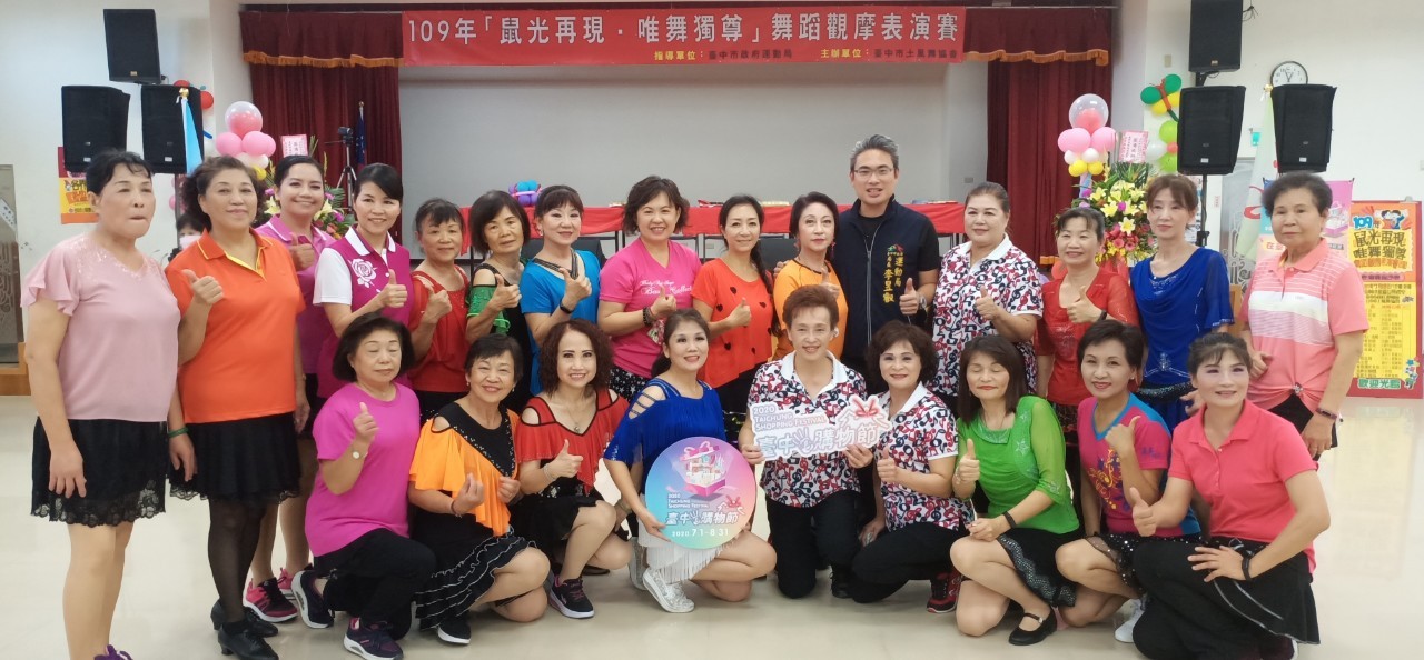 運動局、台中市土風舞協會今日也在大肚區公所,舉辦「鼠光再現‧唯舞獨尊」舞蹈觀摩表演賽,邀請台中市各具特色風格的婦女運動舞蹈團體,透過接力展演的方式,互相觀摩切磋舞技,盼推廣土風舞魅力。(7/18*18)*運動局
