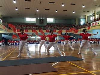 另外,運動局、台中市議會、台中市體育總會元極舞委員會今天也在清水國中舉辦「109年台中市議長盃元極舞觀摩賽」,吸引眾多銀髮族選手參賽,穿著整齊的紅色與白色服裝,動作一致,隨著優美的音樂舞動,氣勢非凡。副議長顏莉敏服務處、議員楊典忠服務處、議員陳政顯服務處、議員陳廷秀服務處等代表、體育總會副秘書長張明昌等人均出席盛會。