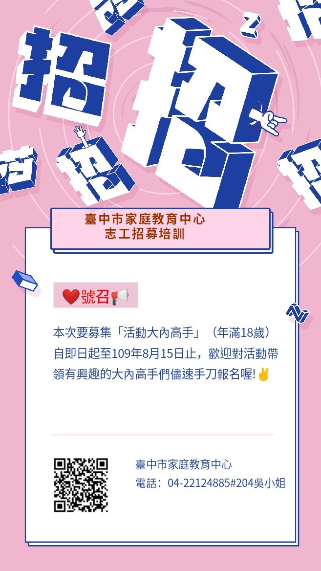 18歲青年看過來!中市家庭教育中心招募「活動大內高手」