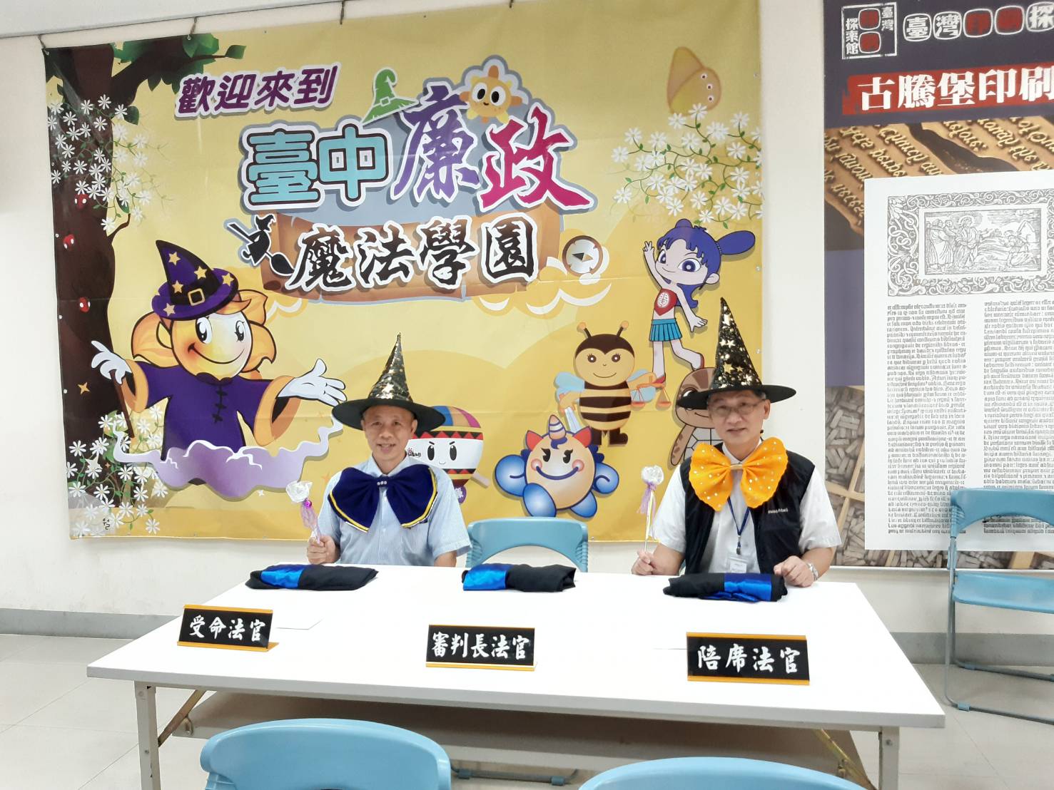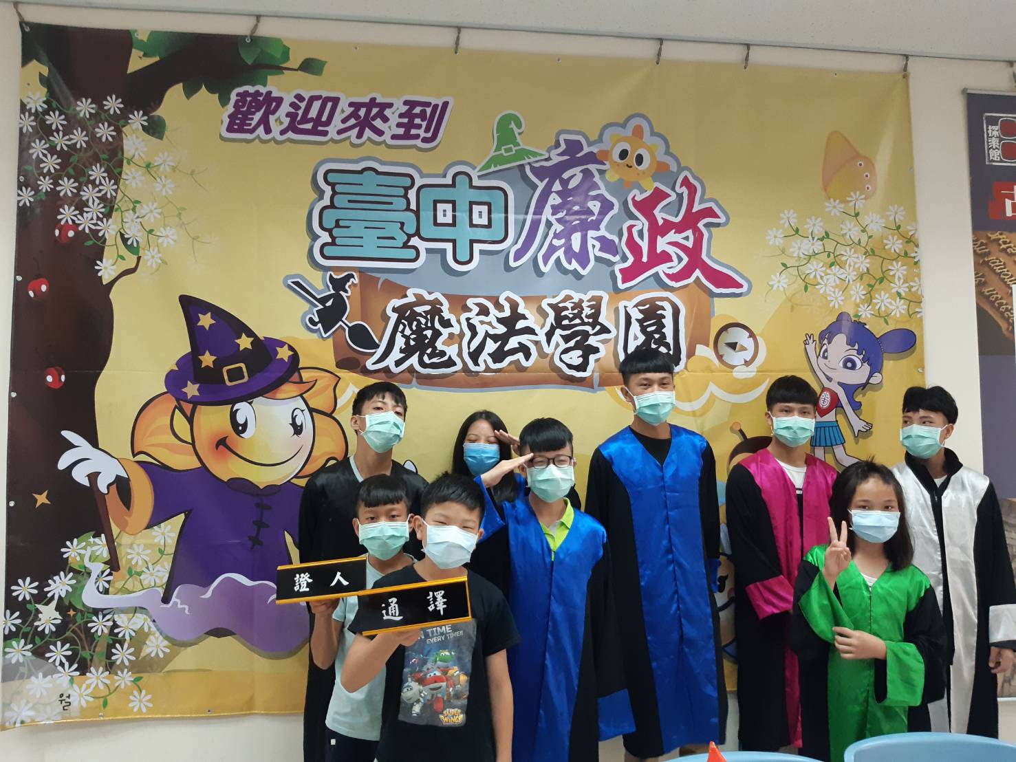 台中市政府為帶給孩子溫暖幸福的暑假,台中廉潔寶寶小風化身魔法部落客,啟動廉潔魔法列車,從海洋到高山、深入偏鄉,舉辦廉潔教育校園宣導誠信營。今(30)日營隊列車抵達台中市大里區財政部印刷廠,邀請育幼院孩子體驗模擬法庭劇、製作廉潔手工書與廉政魔法袋,從歡樂的魔法學園情境中,瞭解廉潔誠信觀念。